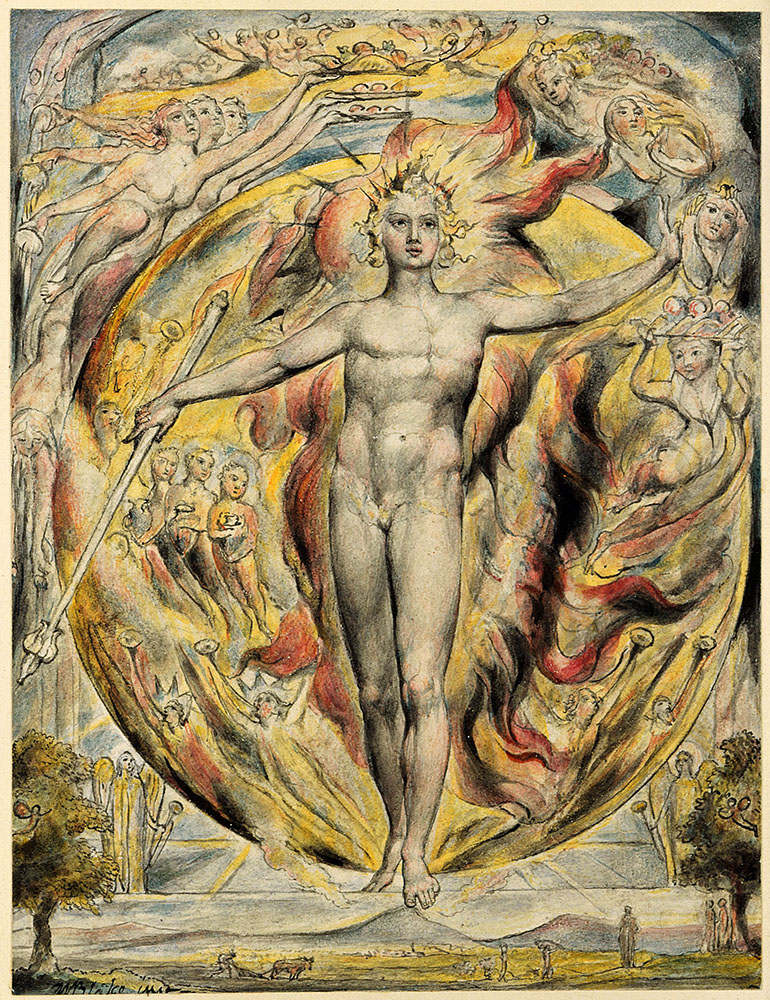Blake speaks of a sacred Energy flowing through the earth and cosmos, into and beyond time. In this he is attuned to the much older world-view. Indigenous peoples inhabit a dynamic cosmos in which plants, rocks and planets are animate beings. Theirs is a unitive vision which contains the dynamic interaction of opposites and rejects the dualistic oppositions of the colonisers. This suggests many parallels with Blake, who affirms progression through contraries and depicts the sun and moon as great pulsing presences.